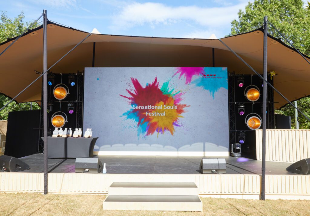 That same commitment to theme ran through every part of NEFF’s Sensational Souls Festival. We turned the Fairmont Windsor Park lawns into buzzing festival zones – a mainstage for the awards, branded lounges, colourful food trucks and roaming performers that kept the energy high. Bold design pulled the story together with giant LED content walls, vibrant festival flags and a striking pergola entrance, all lifted by immersive lighting and soundscapes.